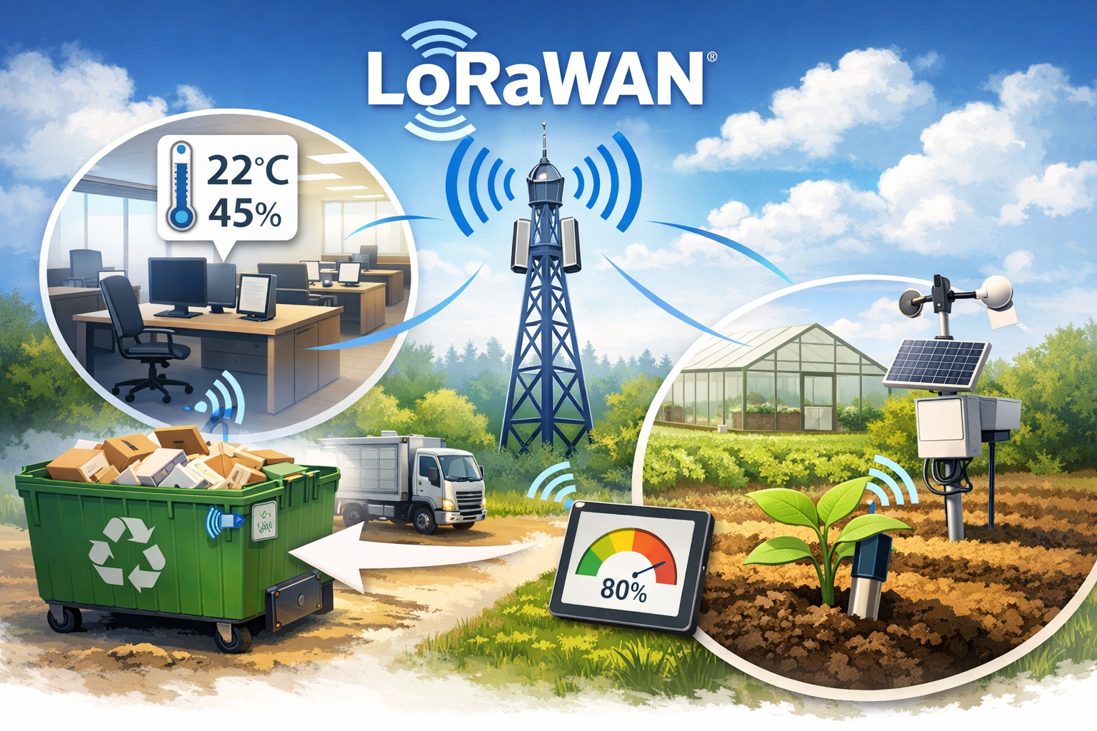 LoRaWAN är en teknik för att överföra små mänder data över relativt långa sträckor. Vanligtvis används LoRaWAN i sammanhang såsom mäta temperaturer/luftfuktighet i kontorslokaler, kontrollera mängden material i en återvinningscontainer eller mäta fukten i jorden i ett jordbruk/växthus.